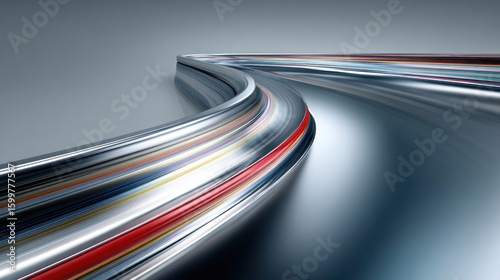Colorful metallic curves forming a dynamic pathway.