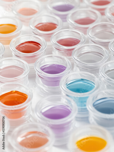 Colorful Microplate Wells: A close-up shot of a microplate with a grid of colorful liquid samples in clear plastic wells.