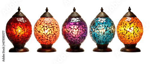 Colorful Mosaic Table Lamps Isolated on Transparent or White Background, PNG