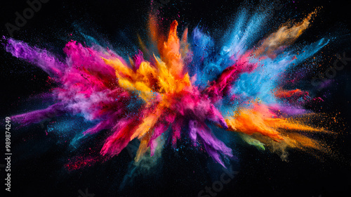 Colorful multicolored confetti explosion in the night sky. Fireworks of colors. The explosion consists of a variety of colors, including red, blue, purple, orange, yellow and green.