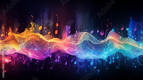 Colorful Musical Notes on Abstract Wavy Lines with Bokeh
