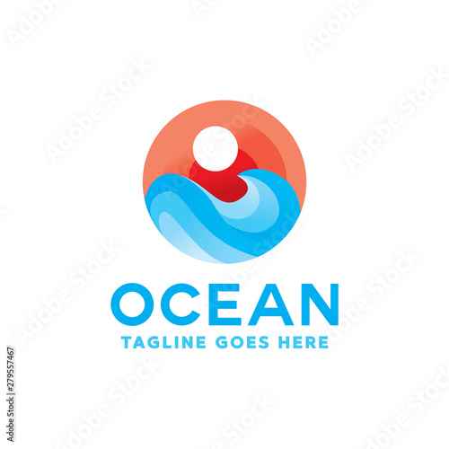 Colorful Ocean Logo Vector, Sea Waves Symbol, Sun Waves Logotype, Sun and Sea icon.