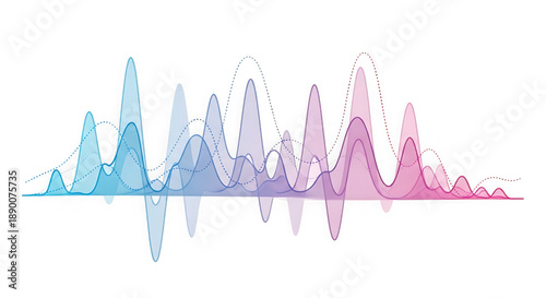 Colorful overlapping wave patterns in blue pink and purple tones on black background isolated on a transparent background