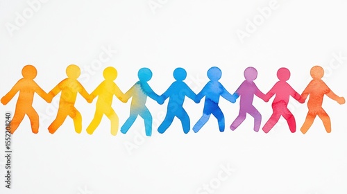 Colorful Paper Chain Figures Holding Hands Symbolizing Unity, Diversity, Inclusion, and Friendship in a Creative Representation