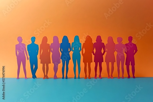 Colorful Paper People Standing Together on Blue Background