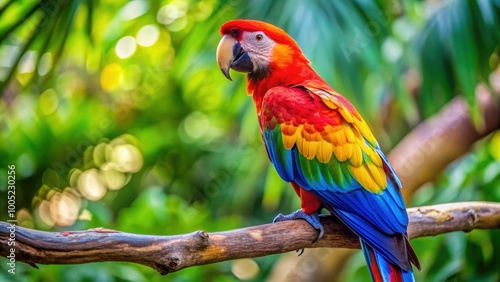Colorful parrot with bright feathers perched on a tree branch, parrot, bird, colorful, feathers, tropical, wildlife, nature, exotic