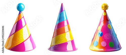 Colorful Party Hats Isolated on Transparent Background for Celebration