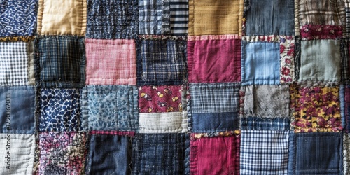 Colorful patchwork quilt with diverse fabric patterns and textures Fashion Revolution Day
