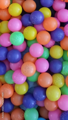 Colorful plastic balls, create a cheerful atmosphere, suitable for children's play area or party decoration.vertical format