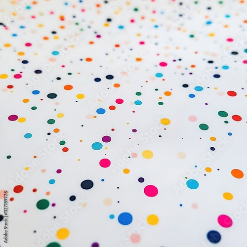 Colorful polka dots scattered on white background