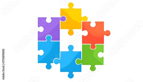 Colorful puzzle pieces create a harmonious design pattern on a bright white background.
