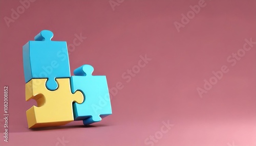 Colorful puzzle pieces stacked against a soft pink background, symbolizing problem-solving and creativity.