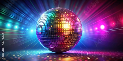 Colorful rendering of a disco ball, disco ball, colorful, rendering, dance party, nightclub, mirror ball, reflection