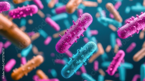 Colorful Representation of Bacteria in Abstract Digital Art Depicting Microbial Life Forms Under a Microscope View