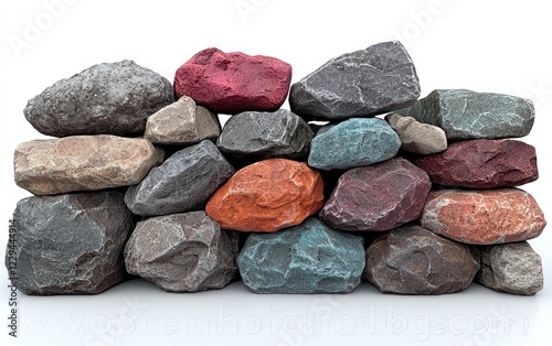 Colorful rock wall on white background, simple backdrop