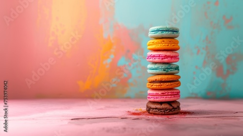 Colorful round biscuits stack, copy space. Generative AI