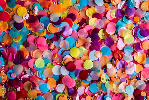Colorful round confetti creating a festive party background