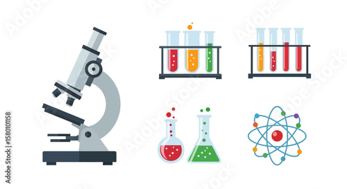 Colorful Science Lab Equipment and Atom Model