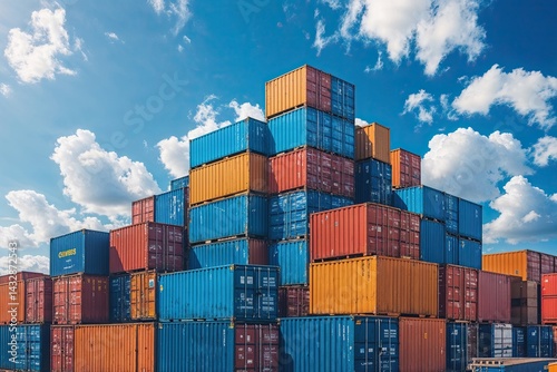 Colorful Shipping Boxes Under Clear Blue Sky Symbolizing Global Freight Logistics and International Trade