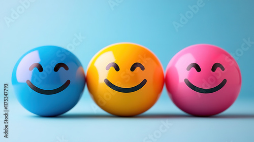 Colorful Smiley Face Balls on Blue Background