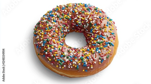 Colorful Sprinkled Donut with Glaze on White Background
