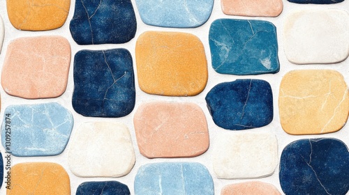 Colorful square stones patterned wall with textured surfaces