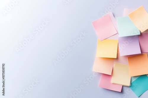 Colorful Sticky Notes on a Light Background, Ideal for Project Planning and Progress Tracking, Representing Actionable Items and Launch Strategies in an Organized Workspace
