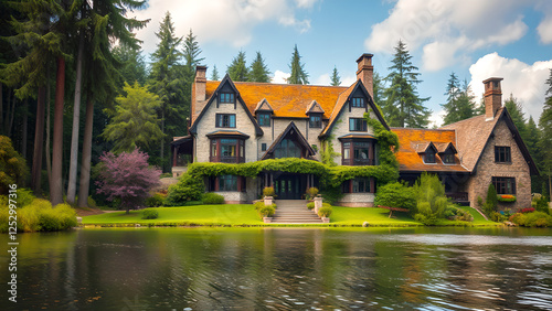 Colorful stone luxury house in the forest