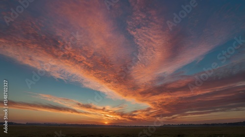 Colorful Sunrise Sky Over Open Field with Vivid Morning Clouds