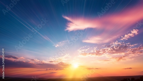 colorful sunset sky with radiant sun and pastel clouds dreamy atmosphere naturers canvas
