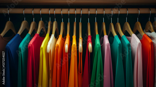 Colorful T-Shirts On Wooden Hangers