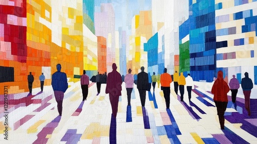 Colorful Urban Scene with Abstract Silhouettes in City Landscape