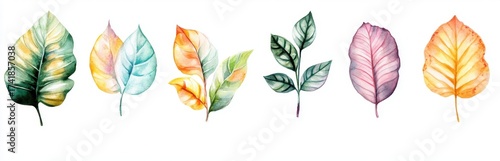 Colorful Watercolor Leaves Collection for Creative Projects