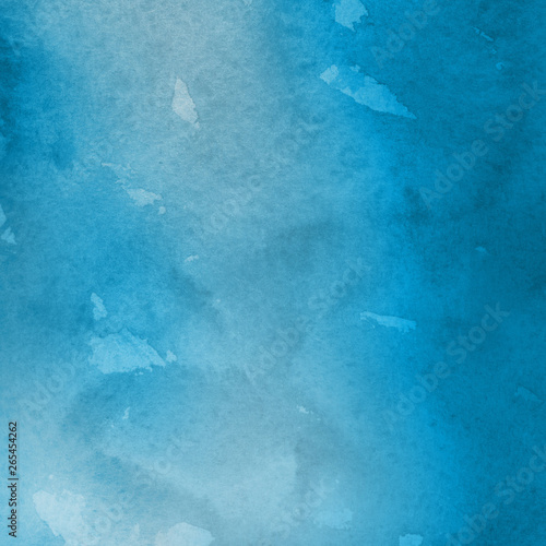 Colorful winter blue ink and watercolor textures on white paper background. Paint leaks and ombre effects. Hand painted abstract image. Deep sea.