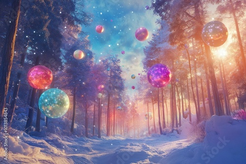 Colorful Winter Landscape with Stunning Orbs