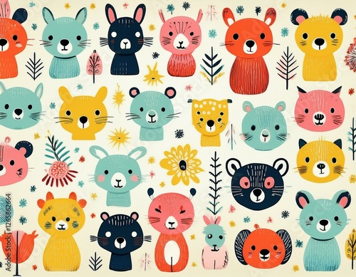 animal, cartoon, cat, vector, icon, dog, adjusting, baby, pattern, illustration, face, rabbit, panda, pet, fun, head, bear, pig, funny, lion, tiger, cute, design, owl, monster, collection, cow, bird, character, inhospitable, fox, horse, zoo, comic, art, mammal, toy, smile, easter, drawing, happy, urchin