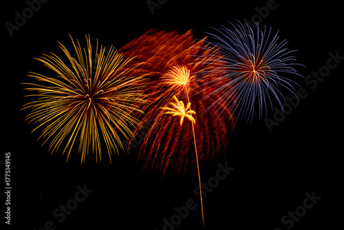 Colourful firework display set for celebration happy new year and merry christmas and fireworks on black background