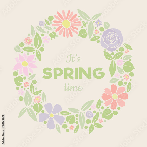 Colourful poster with floral background - Spring time. Vector.