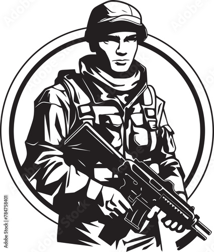 Combat Sentinel Assault Rifle Vector Emblem Tactical Defender Soldier Logo Design