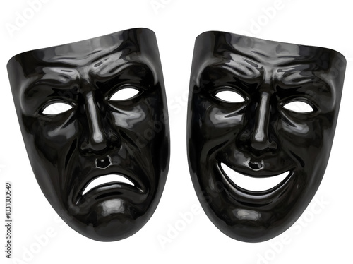 Comedy and tragedy masks isolated PNG on transparent background, theatrical drama symbols for acting and performance arts