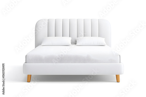 Comfortable bed with pillows with Modern Classic Design isolated on white background