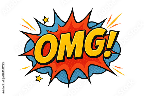 Comic-style 3D text illustration with "OMG!" in bold yellow letters on a colorful explosion background, evoking surprise and excitement.