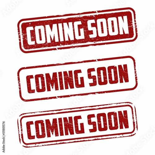 Coming soon grunge rubber stamp on white, vector illustration
