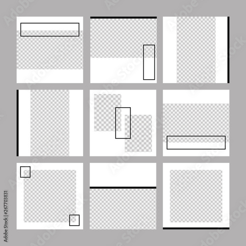 Commercial design, eps 10, for social media, set of vector templates. Editable post cover design. Geometrical elements, trendy colours.