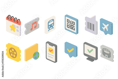 Communication and media 3d icon set. messaging, music, travel symbols collection