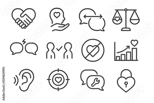 Communication and relationship icons on dark gray background
