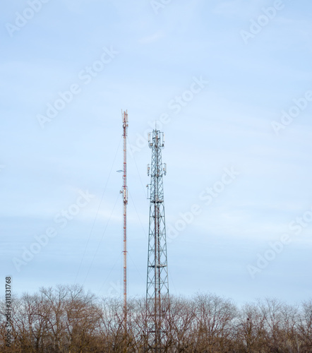 Communication tower transmitting cellular signals and wireless Internet