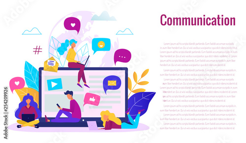 Communication via internet concept. Social networking, chatting vector illustration.