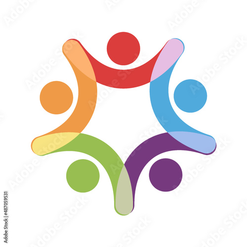 Community care people, social unity concept vector logo with bright colors