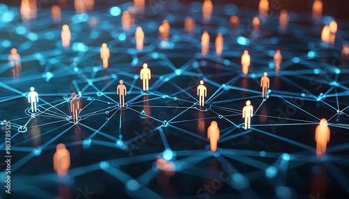 Community network visual with diverse figures interconnected by digital lines.
